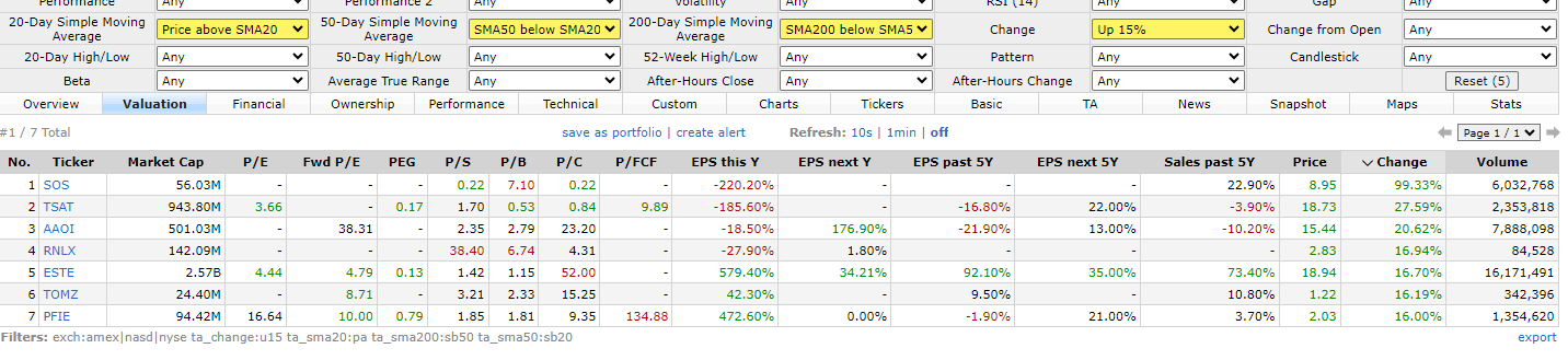 러셀2000, 상승15%이상 종목
