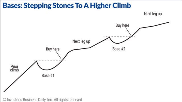 적절한 차트 패턴을 형성하려면 선행 상승 추세가 있어야 합니다. 베이스의 아이디어는 주식이 괜찮은 상승세를 보인 후 숨을 돌린 다음, 더 높은 상승세를 위한 발판을 형성한다는 것입니다.