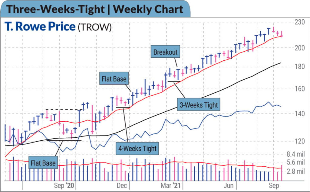 평평한 바닥처럼, 이것은 주식이 폭등하고, 잠시 상승한 다음, 그 이익을 소화하기 위해 잠시 멈춘 후에 발생합니다. 이름에서 알 수 있듯이, 형성되는 데 3주 밖에 걸리지 않습니다. (주식은 4주간의 타이트한 통합을 형성할 수도 있습니다.)