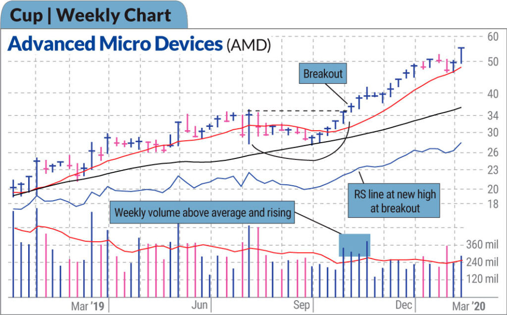 손잡이 없는 컵 - AMD 주간 주식 차트: 투자 방법